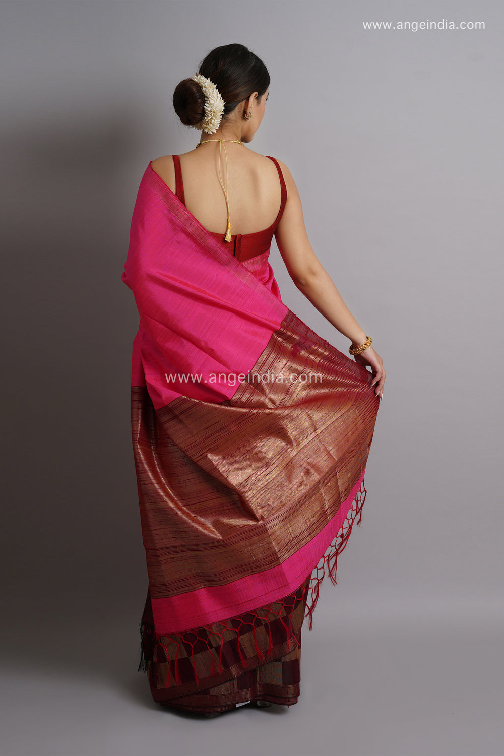 Pure Khadi silk in a gorgeous fuchsia pink and a rich pallu