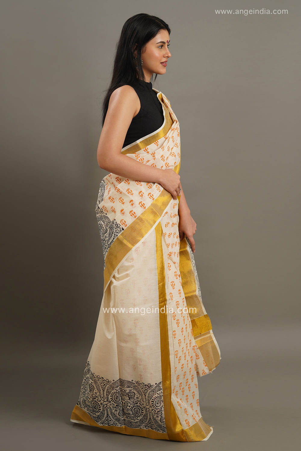 Celebrate this festive season with the classic elegance of a Kerala set mundu, crafted in soft cotton and gold kasavu. This attire embodies purity and grace, symbolizing new beginnings and prosperity. Perfect for festivals and cultural celebrations, the set mundu is a tribute to the rich traditions of Kerala, elegantly blending heritage with contemporary style. Whether attending a temple visit or a family gathering, let this ensemble speak to your refined taste and deep cultural roots.