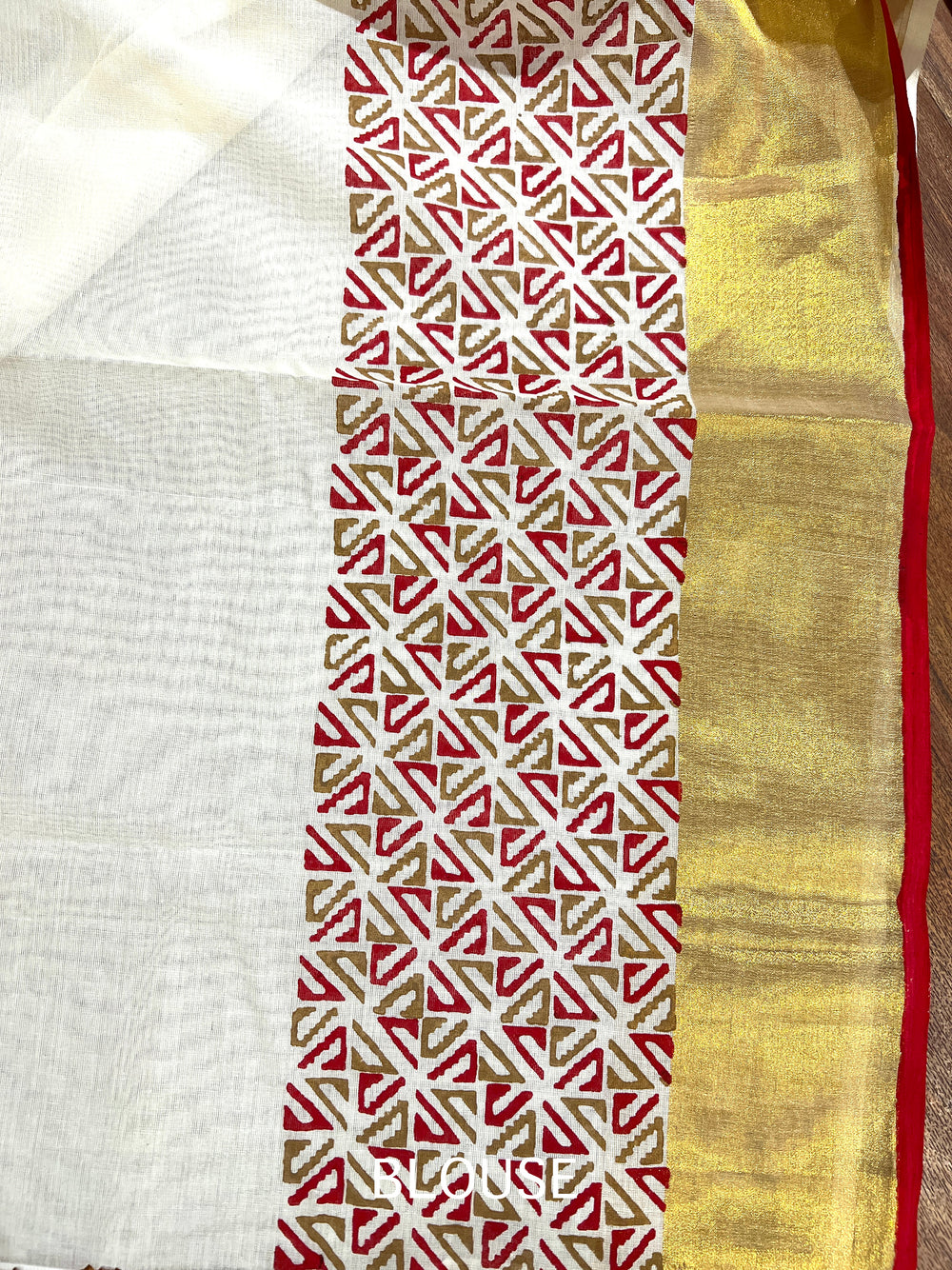 Hand-blocked cotton saree. Comes with hand blocked blouse fabric.
